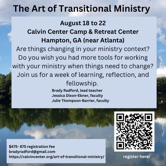 Art of Transitional Ministry training from August 18-22, 2024. This five-day intensive offers a rich blend of small group learning, reflection, and fellowship. It is specifically designed for church leaders who want to deepen their toolbox with essential skills for guiding congregations through seasons of transition.
