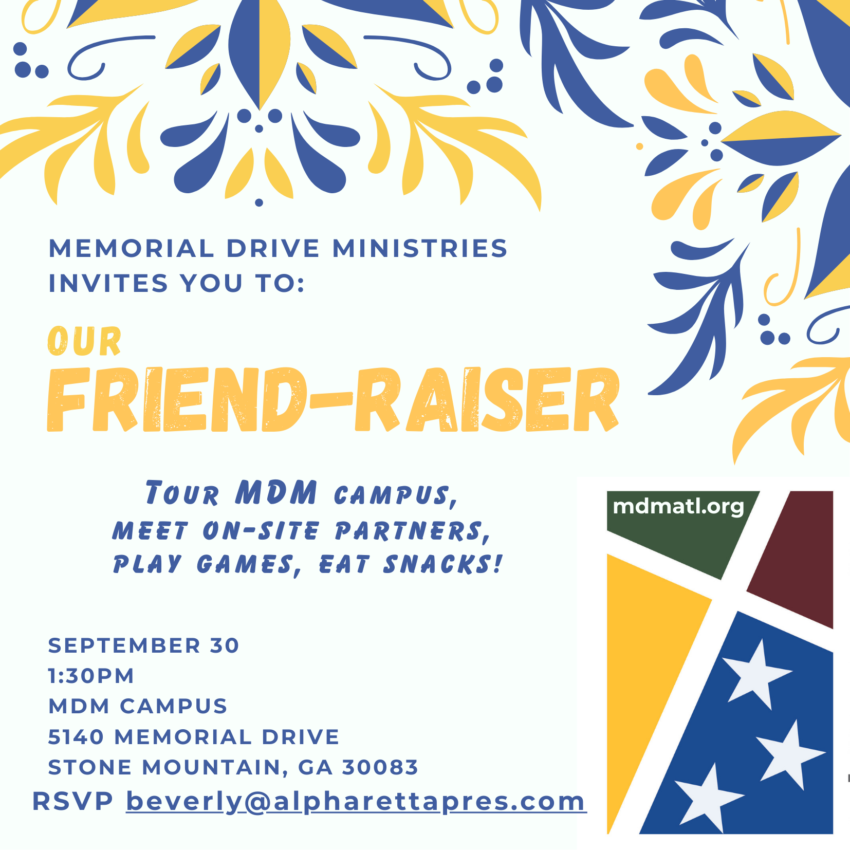 Gather with us at MDM on Saturday, September 30th at 1:30pm for an event of fun, learning, and connection. Our Director will be offering tours of MDM, the courtyard will host yard games, and there will be some light snacks from local cuisine. It will be a chance to learn more about Clarkston, Memorial Drive Ministries, as well as some of the activity that happens on our campus every week.