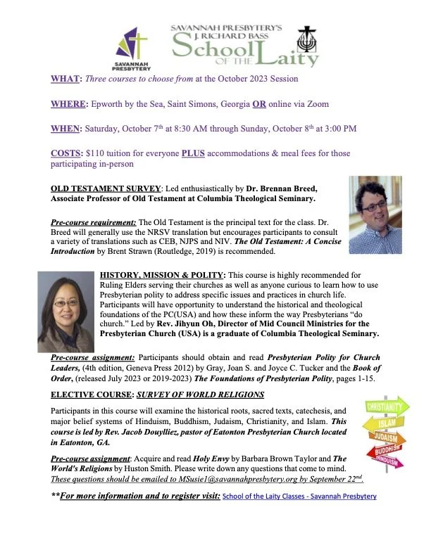 **For more information and to register visit: School of the Laity Classes - Savannah Presbytery